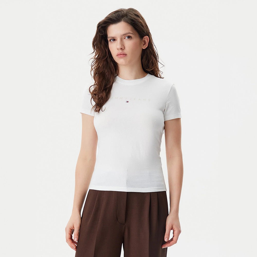 חולצת טישירט קצרה טומי הילפיגר Slim Tonal Linear נשים