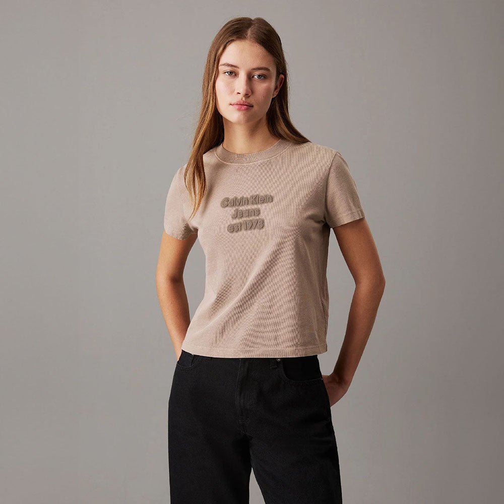 חולצת טישירט קצרה קלווין קליין Washed Puff Print Baby נשים
